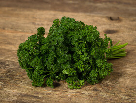 Krulpeterselie wordt per (kleinere) bussel aangeboden.
