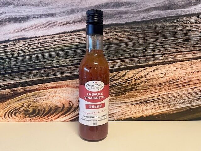 Ingrediënten: koolzaadolie*, water, frambozenpurée*(8.5%), SESAMOLIE* (8%), honing*, rode wijnazijn*, MOSTERD*, (water, MOSTERDZAADJES*, alcoholazijn*, zout), zout, natuurlijke frambozensmaak.