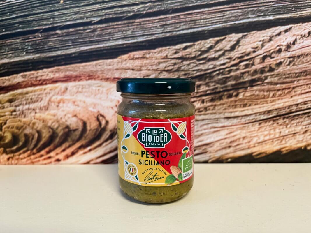 Deze pesto Siciliano is bereid met typisch Siciliaanse producten als amandelen en olijfolie die de pesto een eigen smaak geven.