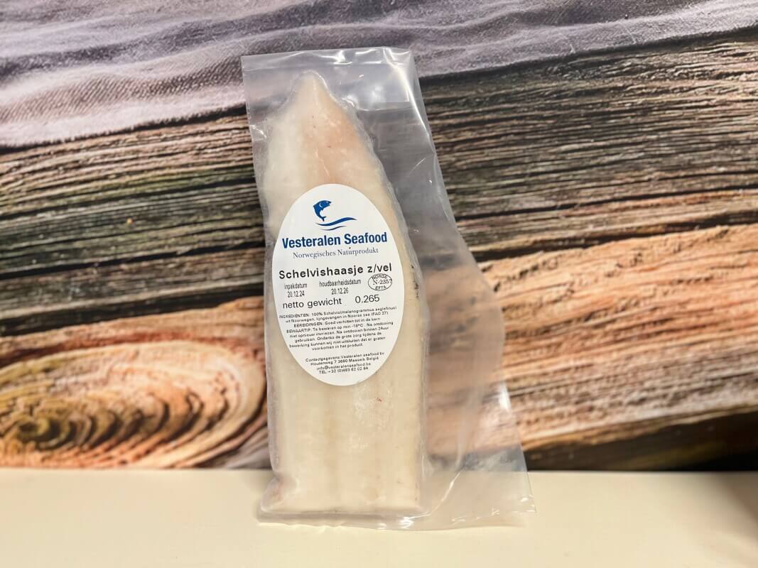 Diepgevroren schelvishaasje. Gewicht: 170g +/-2g.